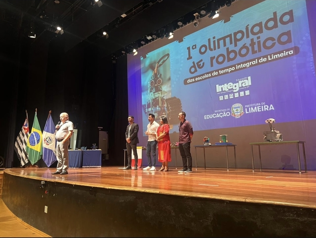 A Fábrica de Inovação marcou presença na cerimônia de abertura da 1º Olimpíada de Robótica das Escolas de Tempo Integral de Limeira, realizada no Teatro Nair Bello.