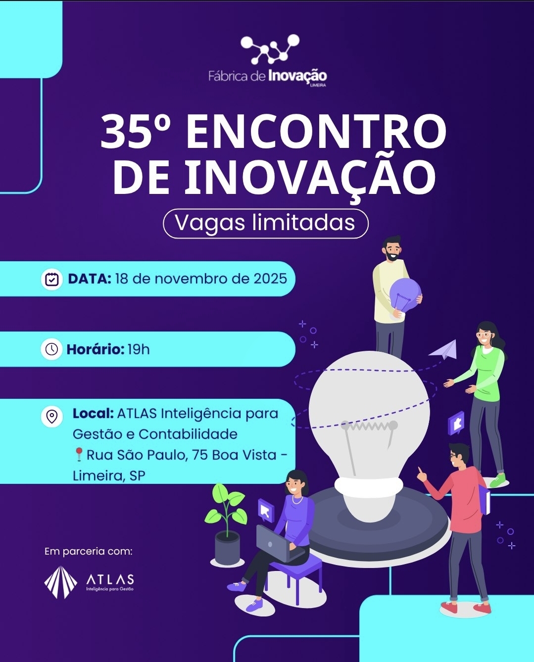 Desta vez, o encontro será sediado na ATLAS Inteligência para Gestão e Contabilidade, reunindo profissionais e empresas para uma noite de troca de experiências, aprendizados e conexões estratégicas que fortalecem o ecossistema inovador de Limeira e região.